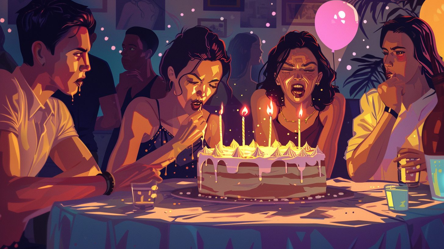 会社の強制参加イベント。クリスマスパーティー、チームビルディング、嫌いな上司のベビーシャワー…。「参加は任意です」と言いながら不参加は暗黙のマイナス評価。上層部の友人が「ケーキ食べて」と無理やり勧めてくるのを笑顔で受け入れる。これは「社交」じゃなくて「演技」。